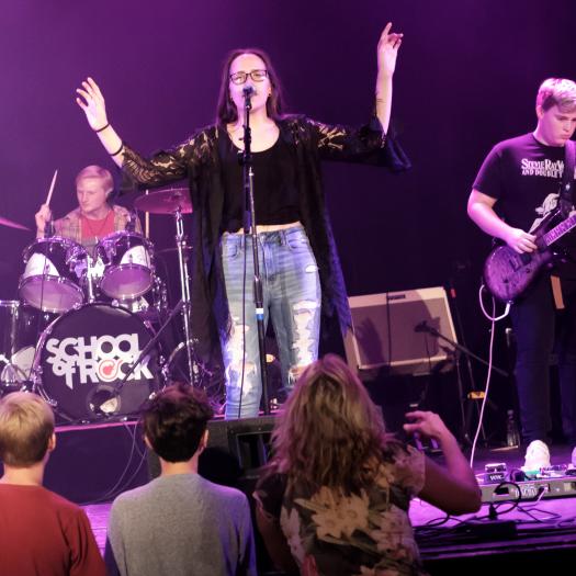 School of Rock Aurora teaches guitar, bass, vocals, keyboards, drums, and combines weekly private music lessons and group band rehearsals to prepare students to take the stage in front of live audiences.
